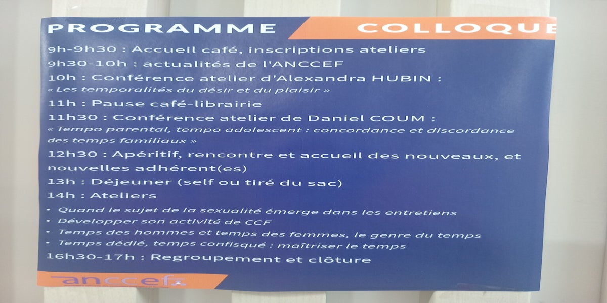 - "Temps des hommes, temps des femmes, le temps a-t-il un genre ?" Atelier animé pour des professionnels lors du colloque annuel de l'Anccef au printemps 2025 à Lyon.