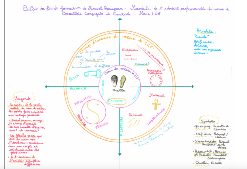 J'ai réalisé ce mandala à la fin de ma formation de conseillère conjugale et familiale, avant de soutenir mon titre.